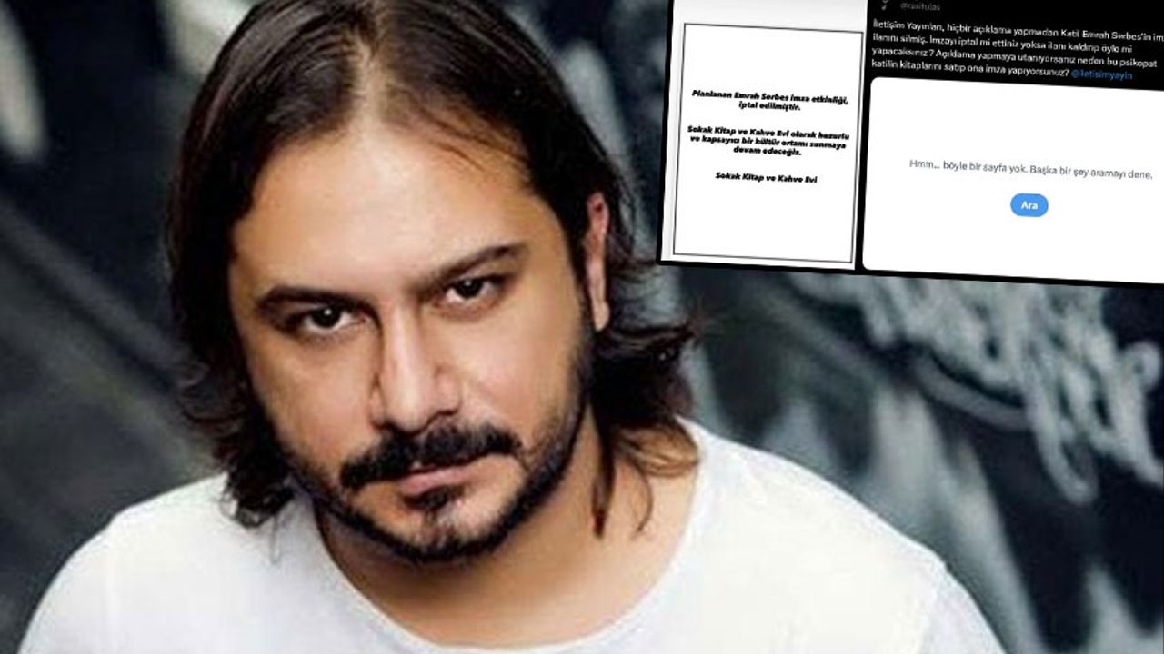 Sosyal medyadan gelen tepkilerin ardından İletişim Yayınları, imza etkinliğiyle ilgili paylaşımları sildi. Yayınevinden konuyla ilgili açıklama yapılmadı. Etkinliğin düzenleneceği Sokak Kitap ve Kahve Evi, sosyal medya hesabından "Planlanan Emrah Serbes imza etkinliği iptal edilmiştir." denildi.