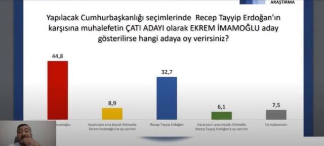 Bu senaryoda, İmamoğlu'nın toplam oyu yüzde 53,7, Erdoğan'ın toplam oyu yüzde 38,8 olarak ölçülmüş oldu.