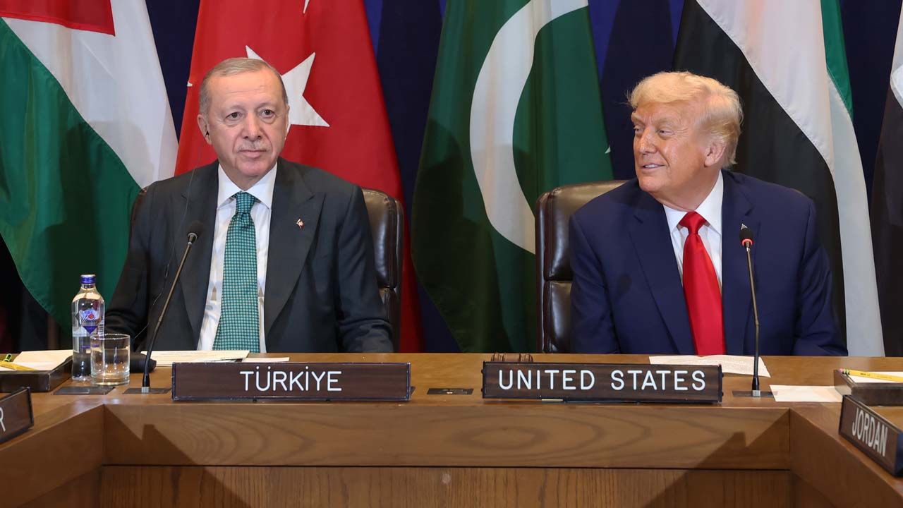 Erdoğan ile masanın ortasında yan yana oturan Trump, "Gazze'deki savaşı bitireceğiz. Saygı duyduğum liderlerle, Orta Doğu'da normal yaşama dönmek istiyoruz" dedi.