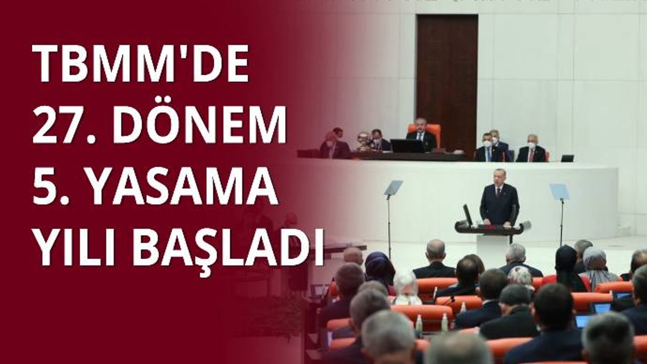 TBMM'nin 27. Dönem 5. Yasama yılı başladı. AKP'li Cumhurbaşkanı Recep Tayyip Erdoğan da açılış programına katılmak üzere TBMM’ye geldi. Türkiye Büyük Millet Meclisi (TBMM) Genel Kurulu, 27. Dönem 5. Yasama Yılı'nın başlaması dolayısıyla TBMM Başkanı Mustafa Şentop başkanlığında özel gündemle toplandı.