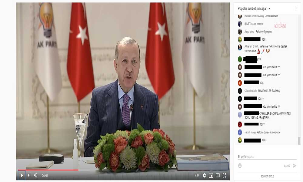AKP'li Cumhurbaşkanı Erdoğan'ın gençlerle gerçekleştirdiği yayında YouTube'daki izleyicilerin yorumlara "128”, “128 kere maşallah”, “Yüz yirmi sekiz?” yazdığı görüldü.