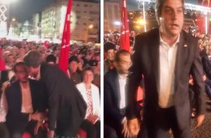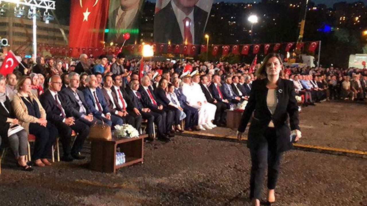 Cumhurbaşkanı ve AKP Genel Başkanı Recep Tayyip Erdoğan 15 Temmuz konuşmasında CHP Lideri Kemal Kılıçdaroğlu’na yüklenince Kocaeli’de demokrasi nöbetine katılan CHP’li İzmit Belediye Başkanı Fatma Kaplan Hürriyet, CHP’liler ve İYİ Partililer alanı terk etti.