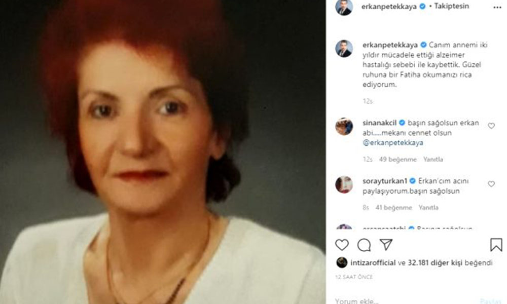 Erkan Petekkaya'nın iki yıldır Alzheimer hastalığıyla mücadele eden annesi Şerife Petekkaya hayatını kaybetti. Oyuncu, hayatının en acı haberini de sosyal medya hesabından duyurdu.