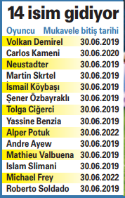 2-1’LİK Başakşehir yenilgisi sonrasında Fenerbahçe Teknik Direktörü Ersun Yanal, “Bazıları bu atmosferi kaldıramıyor. F. Bahçe büyük bir takım. Büyük takımın atmosferini kaldırmak kolay değil” demişti. Bu sözlerin ardından Sarı-Lacivertli takımda sezon sonunda yapılacak büyük operasyonun düğmesine basıldı. Öncelikli olarak mukavelesi bitecek hiçbir isimle sözleşme yenilenmeyecek. 1.5 yıllığına kiralanan Moses dışında kiralıklara da yol verilecek.