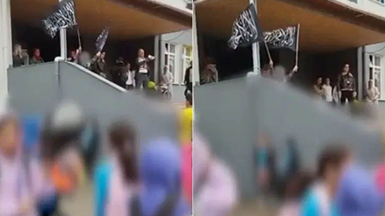 İstanbul'un Esenyurt İlçesi'nde bulunan bir okulda ise bir öğrenci tarafından iki elinde de bulunan Kelime-i Tevhid bayrağı açıldı.