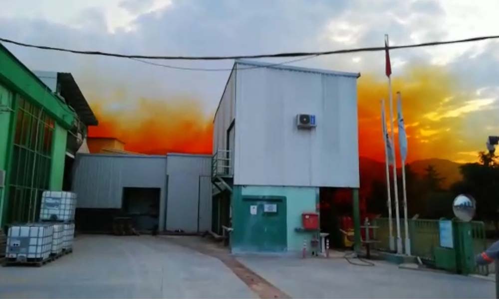 Antalya Organize Sanayi Bölgesi’nde temizlik kimyasalları üretimi yapılan fabrikanın asit tankı patlayınca gökyüzünü asit dumanı kapladı. Hafta sonu tatili ve pandemi kısıtlaması nedeniyle fabrikada çalışan personel olmaması, olası faciayı önledi.