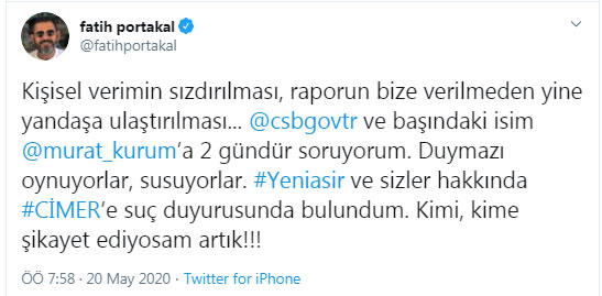 "Kimi, kime şikayet ediyosam artık" diyen Portakal'ın açıklaması şöyle: