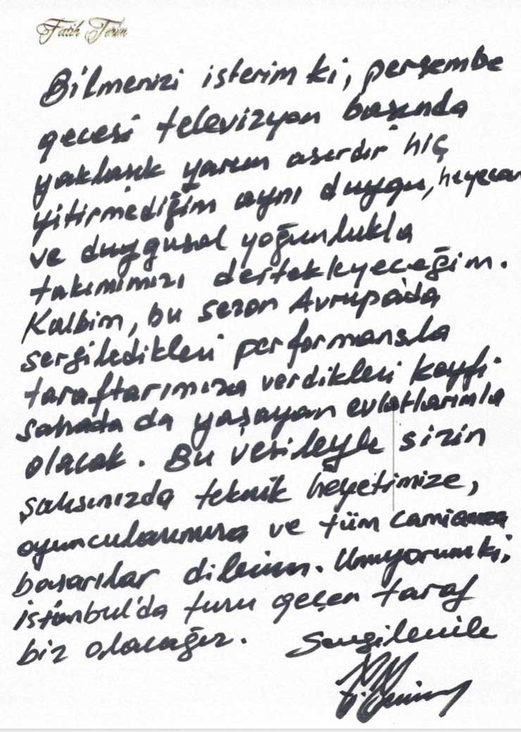 Fatih Terim'in el yazısıyla yazdığı mektubu