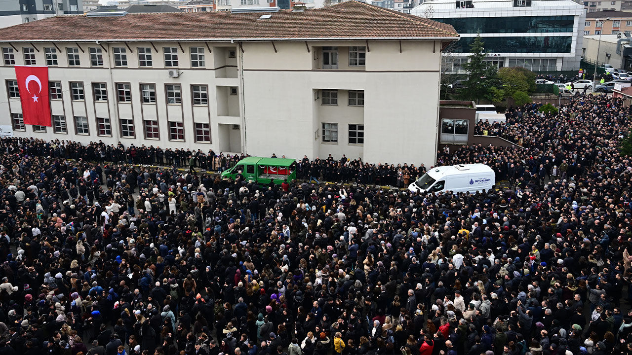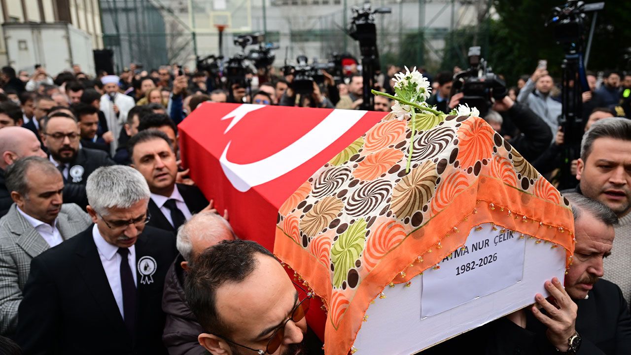 Taşdelen Borsa İstanbul Mesleki ve Teknik Anadolu Lisesi'nde 11. sınıf öğrencisi F.S.B'nin (17) bıçaklı saldırısında ağır yaralanan ve kaldırıldığı hastanede müdahaleye rağmen yaşamını yitiren öğretmen Fatma Nur Çelik'in (44) Türk bayrağına sarılı cenazesi okula getirildi.