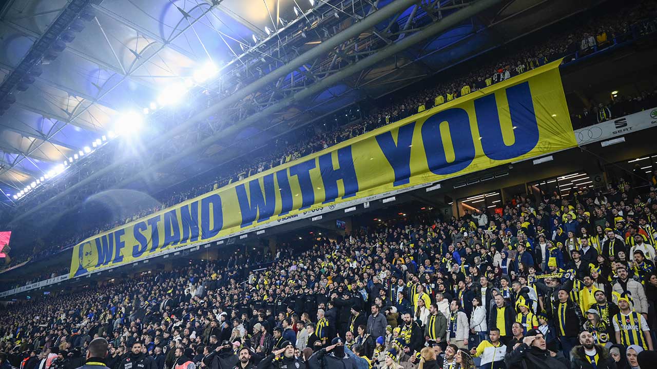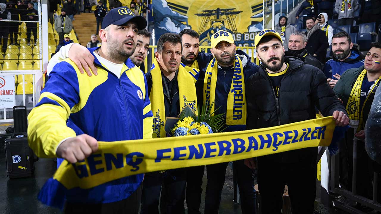 Fenerbahçeli futbolcular, sahaya Jose Mourinho şarkısıyla çıkarken, taraftarlar ise Portekizli çalıştırıcıya "Yanındayız" ifadesinin yer aldığı pankart açarak destek verdi.