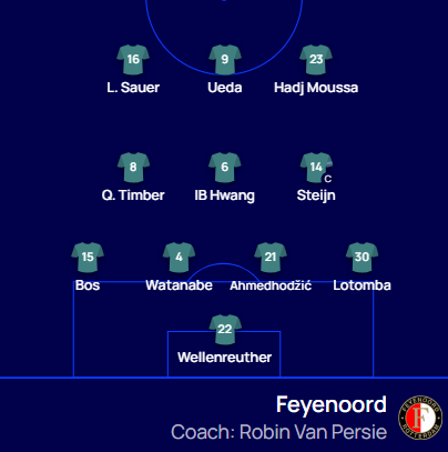 Fenerbahçe'nin rakibi Feyenoord'un sahaya çıkacağı ilk 11 ise şu şekilde: