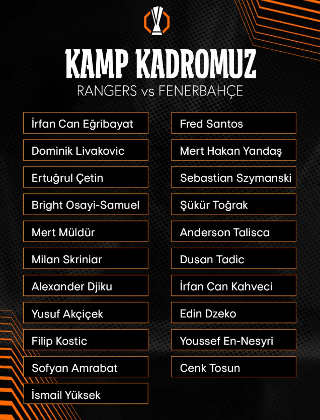 Fenerbahçe, UEFA Avrupa Ligi'nin son 16 turunda yarın Rangers'a konuk olacak.