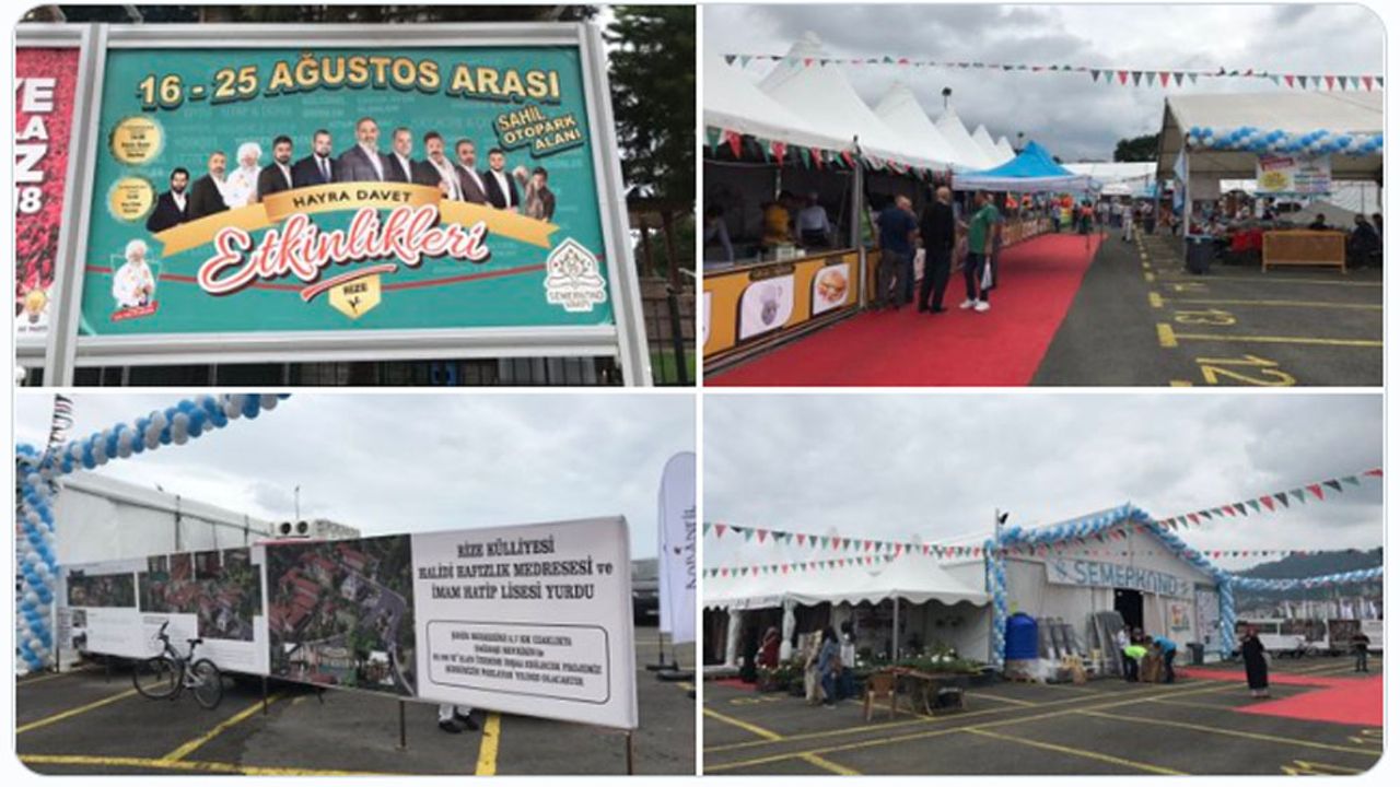 "Rize Belediyesi, sahildeki dolgu alanını dokuz günlüğüne Menzil’cilere tahsis etti. Menzil’ciler ‘Hayra Davet Etkinlikleri’ adı altında panayır, alışveriş mağazası, oyun alanı, sahne ve yiyecek içecek stantları kurmuşlar. Fiş vermek yok, yapılacak Halidi Medresesi için bağış var."