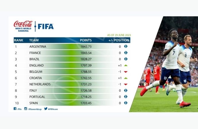 FIFA'nın internet sitesinde yayınlanan listede, son Dünya Kupası şampiyonu Arjantin zirvedeki yerini korudu. Fransa 2'nci, Brezilya ise 3'üncü sırada yer aldı.