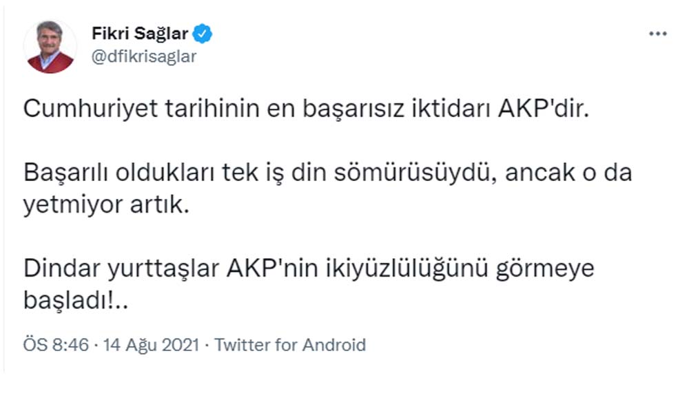 Dindar yurttaşlar AKP'nin ikiyüzlülüğünü görmeye başladı!.." ifadelerini kullandı.