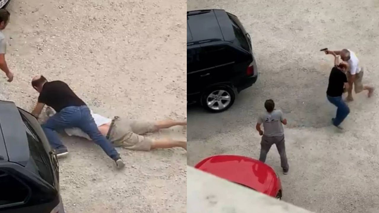 Hikmet U., da bu sırada patlayan tabancayla sağ el baş parmağından yaralandı. Çevredekilerin araya girerek tarafları ayırdığı kavga, bir vatandaş tarafından cep telefonu kamerasıyla görüntülendi.