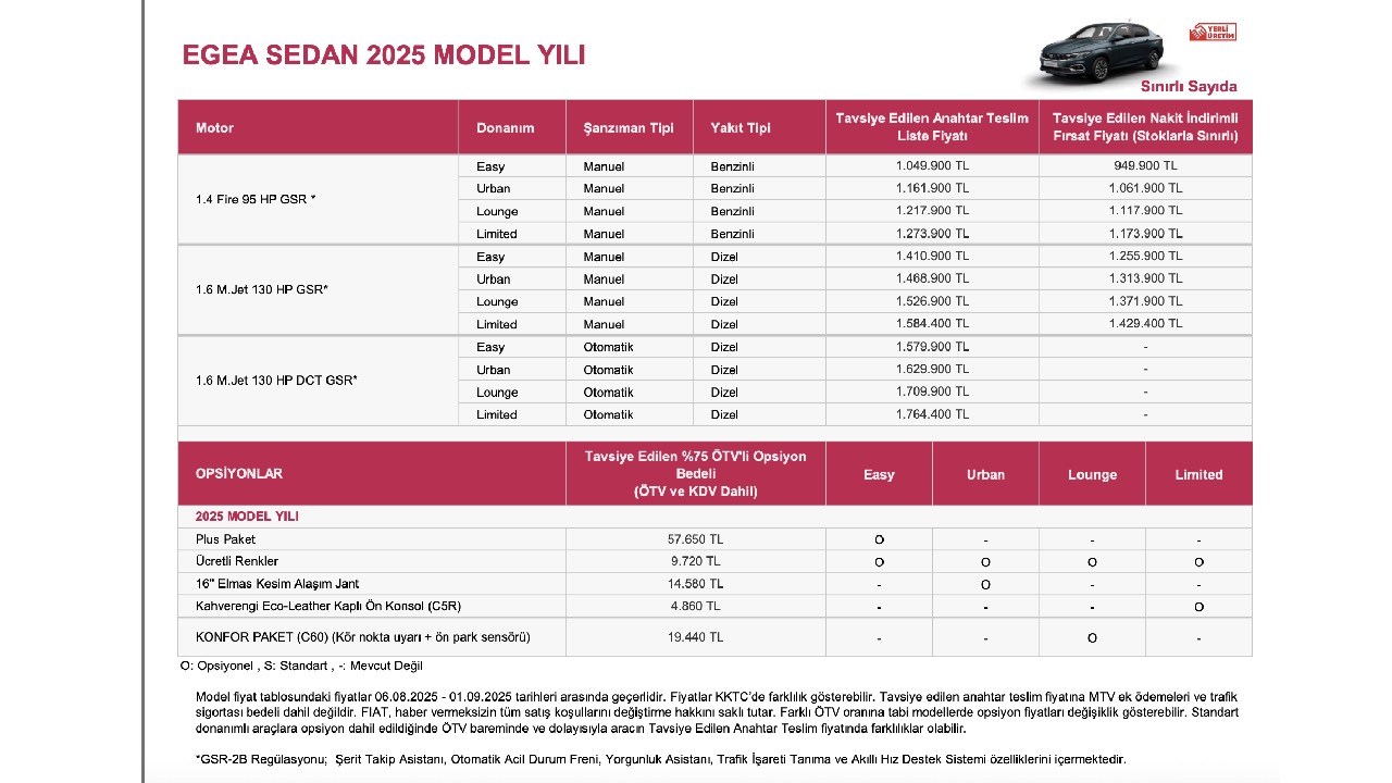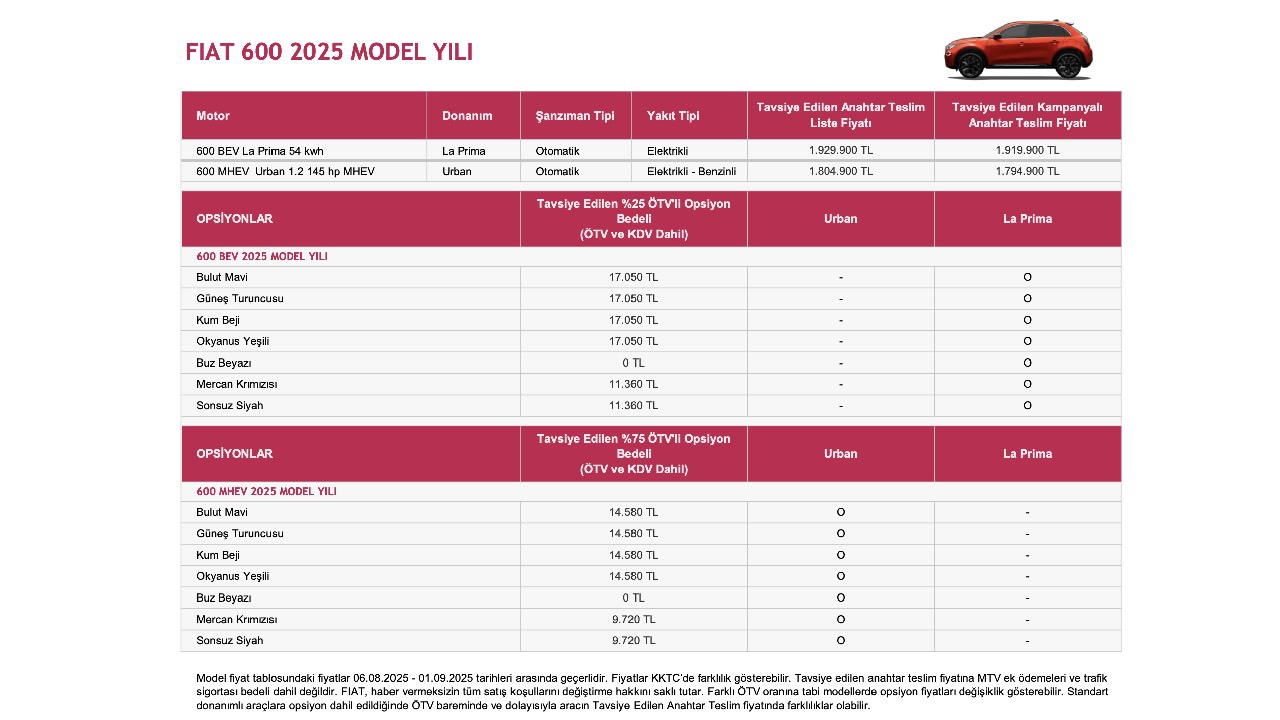 Araç sahibi olmak isteyen birçok vatandaş tarafından otomobil markalarının fiyat listeleri araştırılıyor. Fiat'ın fiyat listesi de en çok araştırılan markaların arasında yer alıyor. İşte, Fiat'ın fiyat listesi...