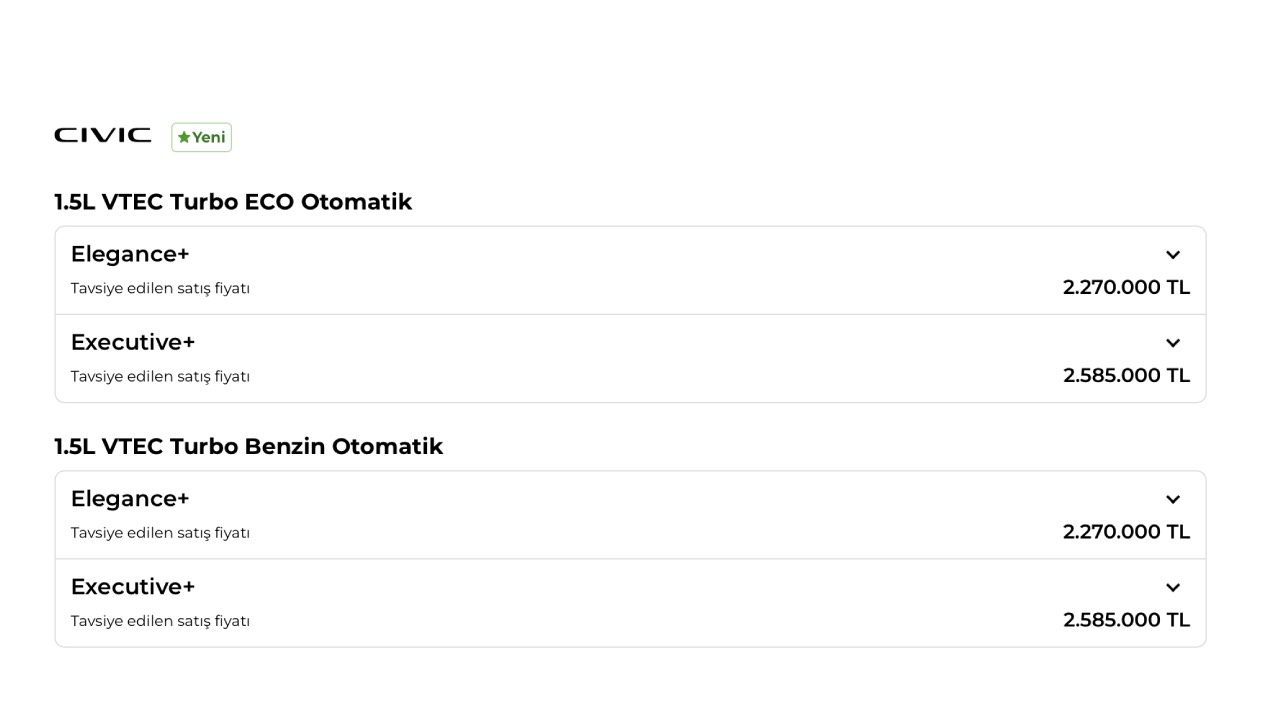 1 milyon TL'nin altında araç var mı? İşte Honda’nın fiyat listesi...
