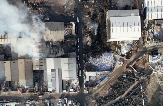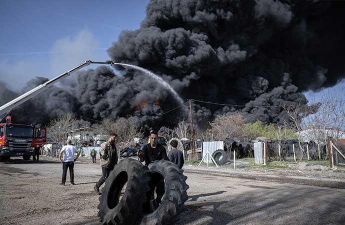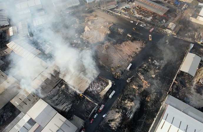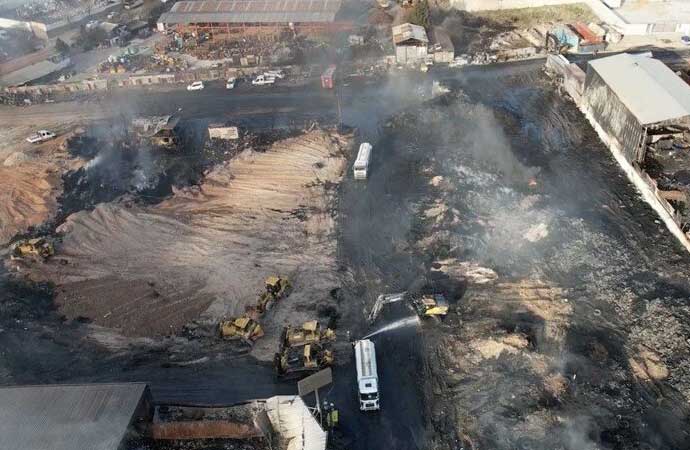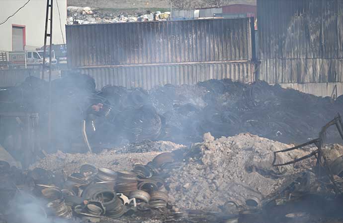 Ankara'nın Yenimahalle ilçesindeki Hurdacılar Sanayi Sitesi'nde araç lastikleri ve atıkların bulunduğu alanda çıkan yangın 16 saat sonra kontrol altına alındı.