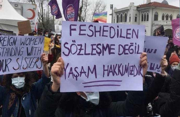 AKP'li Cumhurbaşkanı Recep Tayyip Erdoğan'ın kararıyla kadınların yaşam hakkını savunan İstanbul Sözleşmesi feshedildi. Kadınlar birçok ilde bir araya gelerek kararı protesto etti.