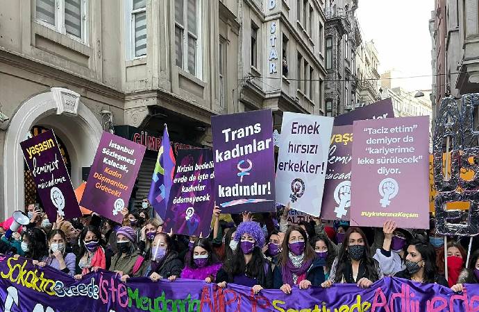 Kadın ve LGBTİ+lar 8 Mart Dünya Kadınlar Günü'nde Taksim Sıraselviler Caddesi'nde bir araya geldi. Polis Taksim'e çıkan tüm yolları kapattı, yürüyüş Karaköy'de sonlandırıldı.