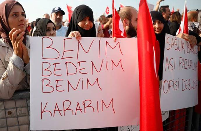 Aşı karşıtları İstanbul ve Ankara'da miting düzenledi. Mitinde koronavirüsün bir oyun olduğu vurgulandı. Kadınların kürtaj haklarına ilişkin kullandıkları "Benim bedenim benim kararım" sloganının yazılı olduğu pankart dikkat çekti.