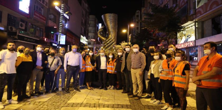 Açıklamanın ardından park içerisindeki ışıklar söndürülerek, depremde hayatını kaybedenler için 1 dakikalık saygı duruşunda bulunuldu