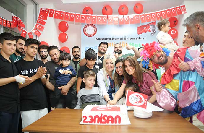Hatay'ın Antakya ilçesinde, 23 Nisan Ulusal Egemenlik ve Çocuk Bayramı kapsamında hastanede tedavi gören çocuklar için etkinlik düzenlendi.