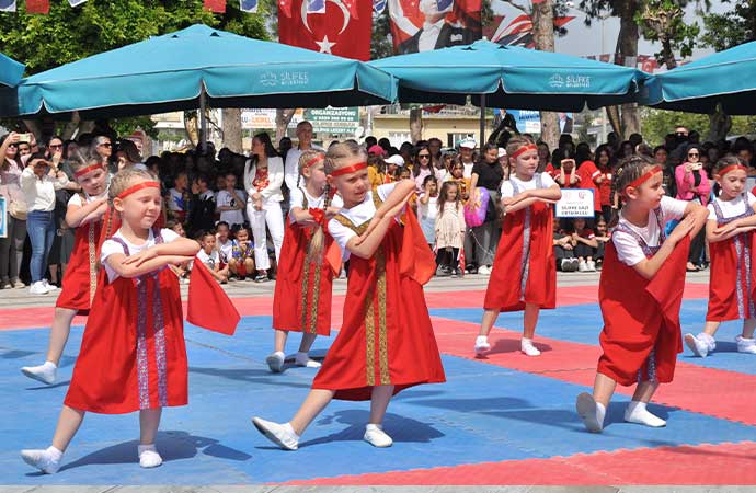 Mersin'in Silifke ilçesinde, 23 Nisan Ulusal Egemenlik ve Çocuk Bayramı dolayısıyla tören düzenlendi. Mersin Büyükşehir Belediyesi tarafından Silifke'de gerçekleştirilen "Uluslararası Çocuk Festivali" kapsamında kente gelen farklı ülkelerden çocuklar yöresel kıyafetlerle halk dansları sergiledi.