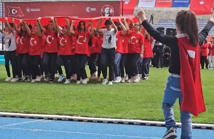 Kars'ta 23 Nisan Ulusal Egemenlik ve Çocuk Bayramı dolayısıyla törenler düzenlendi. Kars Atletizm Sahası'nda düzenlenen programda öğrenciler, hazırladıkları gösterileri sergiledi.