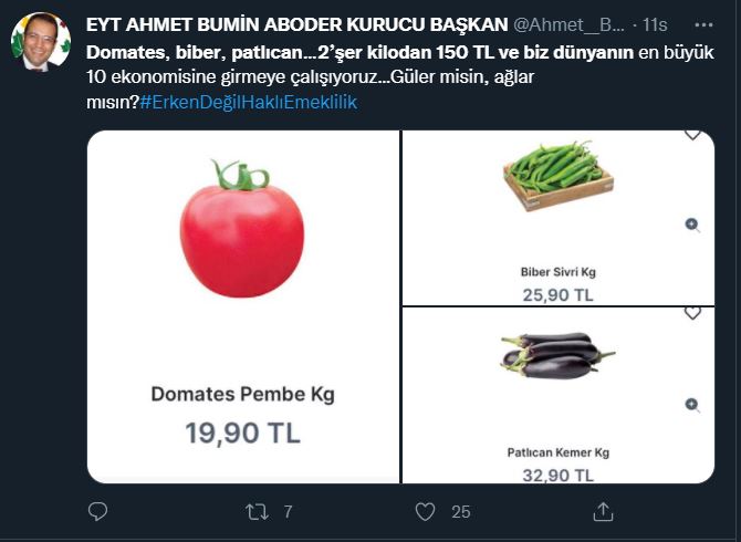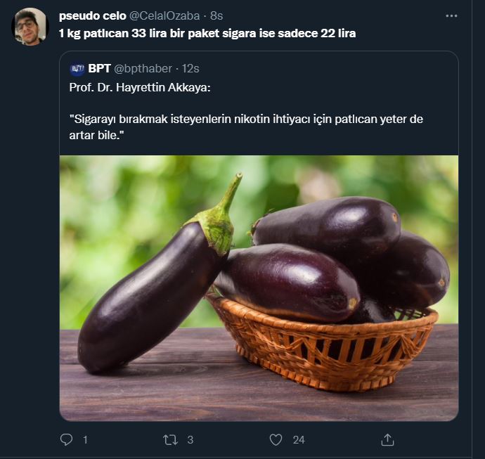 30 liraya kadar çıkan patlıcan fiyatlarına sosyal medyadan tepki