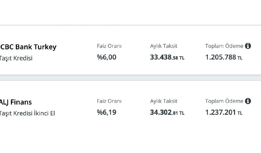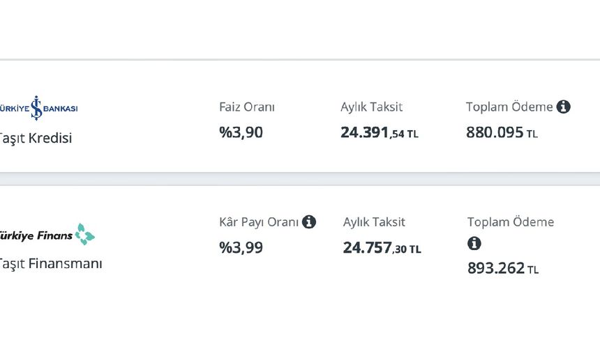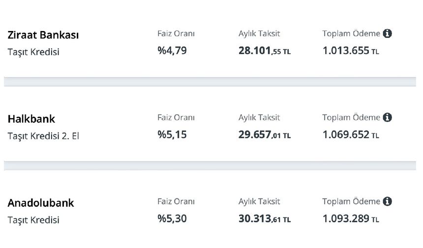 NOT: Listede 2. el araçlara verilen krediler yer almaktadır. Detaylı bilgi için lütfen bankaların resmi internet sitelerini ziyaret ediniz.