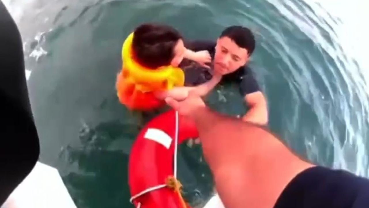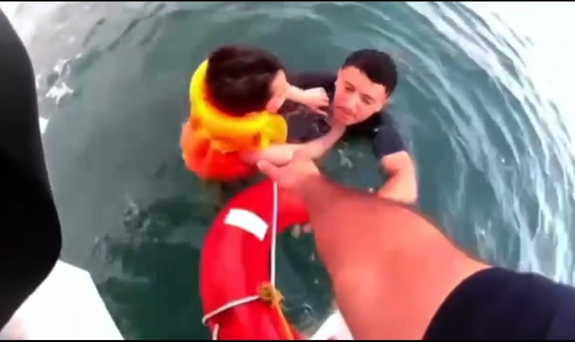 İhbar üzerine bölgeye gelen Sahil Güvenlik ekipleri, çocuğu 1200 metre açıkta bota aldı.