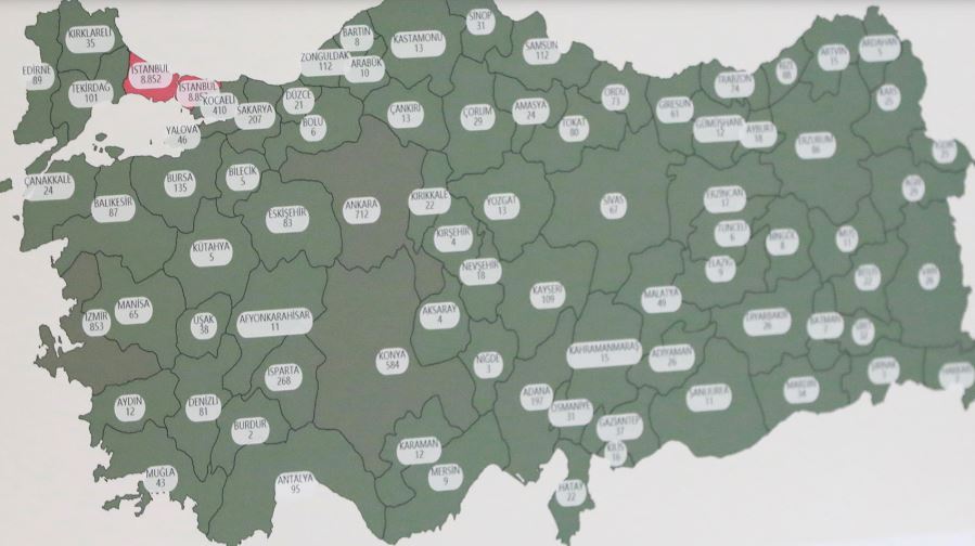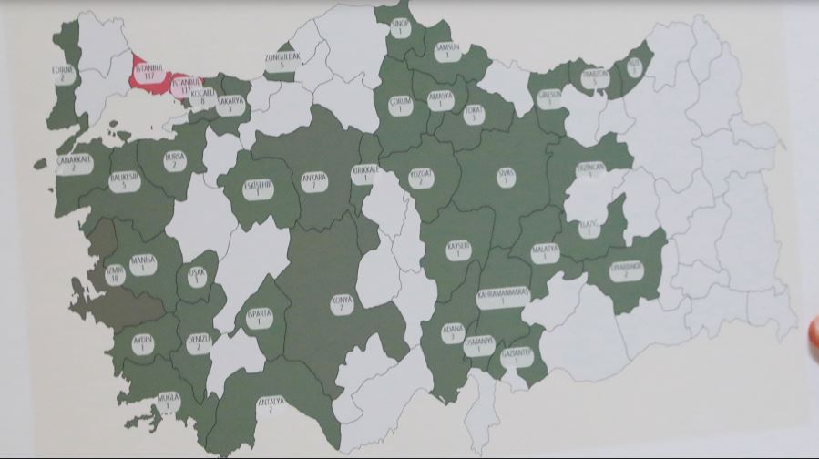 Haritafa 117 ölüm ile en yüksek sayı İstanbul'da, Onu sırasıyla İzmir (18), Kocaeli (8), Ankara (7), Konya (7), Zonguldak (5), Trabzon (5), Balıesir (5), Adana (3) ve Sakarya (3) izliyor.