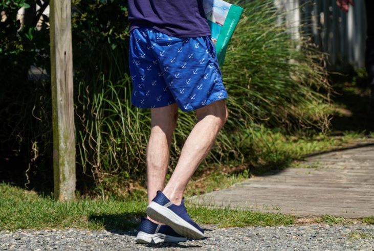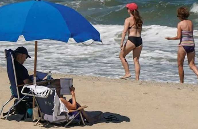 Çok sayıda lokanta, mağaza, otel ve eğlence parkının bulunduğu ve yaz aylarında ücretsiz konserlerin düzenlendiği Rehoboth Beach’te Biden şort mayosu, tişörtü, şapkası ile oturdu.