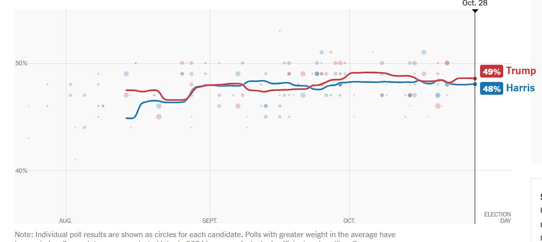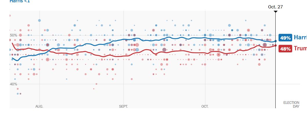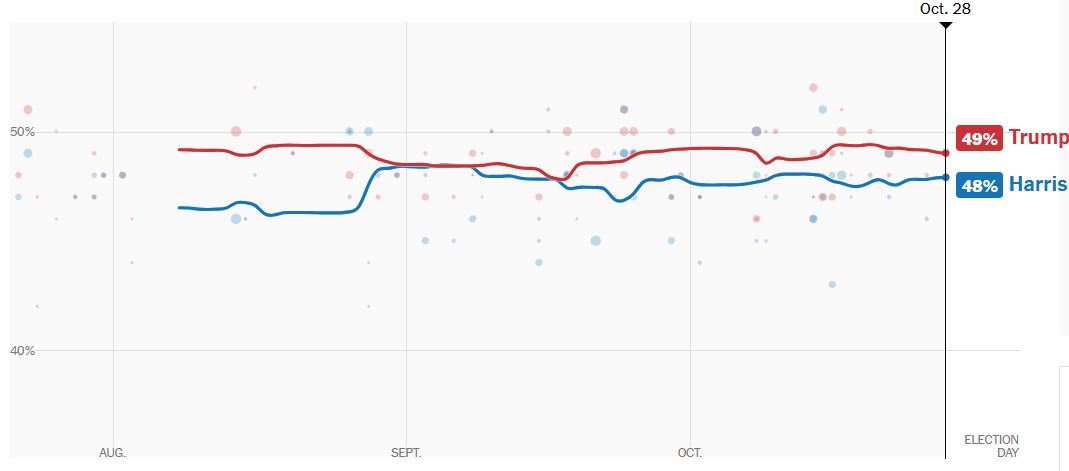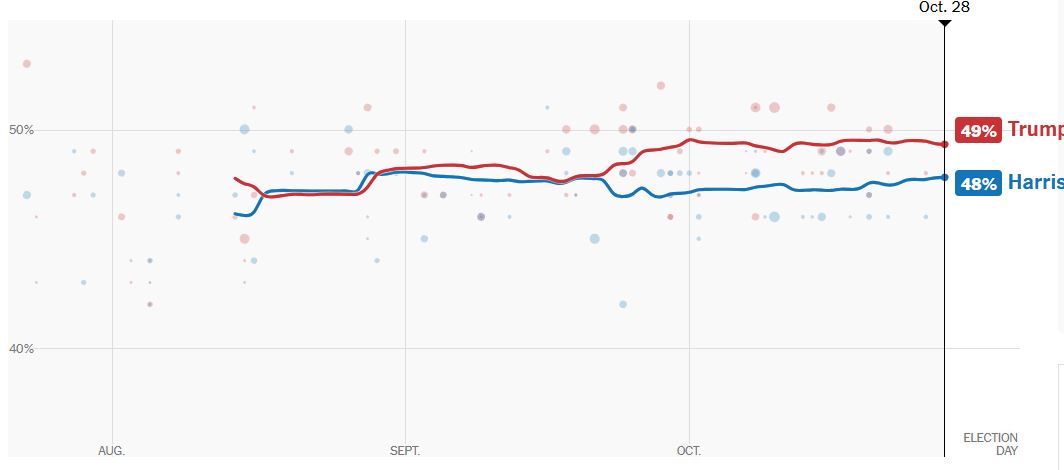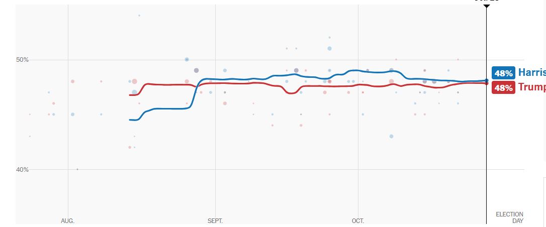 Donald Trump, Ağustos ve Eylül aylarında Harris ile açılan farkı seçime kısa bir süre kala kapadı.