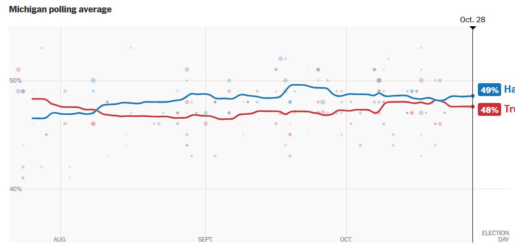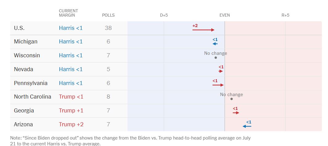 Anket sonuçlarına göre Kamala Harris Mishigan ve Arizona'da oylarını artırırken diğer büyük eyaletlerin tamamında Donald Trump oylarını artırdı.