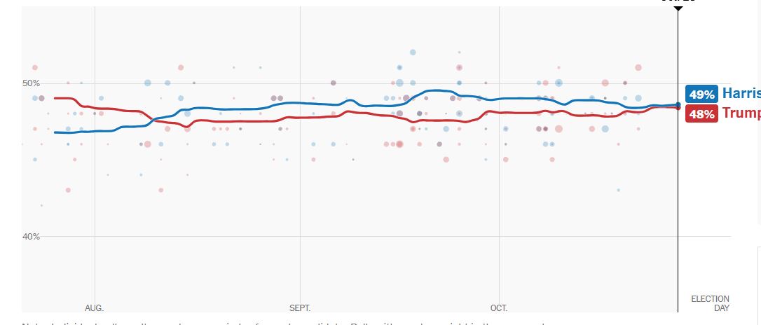 Genel anketlere göre Kamala Harris, Donald Trump'ın sadece 1 puan üstünde