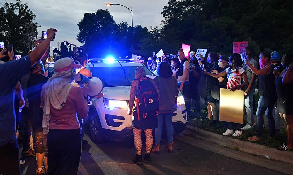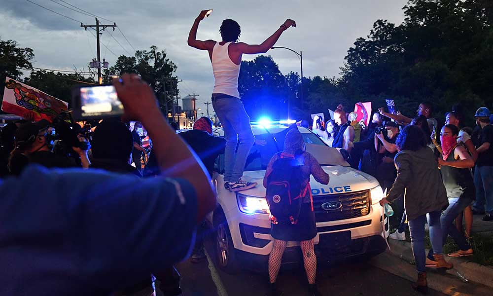 Polis, "adalet yoksa huzur yok" sloganları atan yüzlerce göstericinin, Beyaz Saray'ın önündeki "La Fayette" parkındaki demir parmaklıklara yaklaşmasına izin vermeyince arbede yaşandı.
