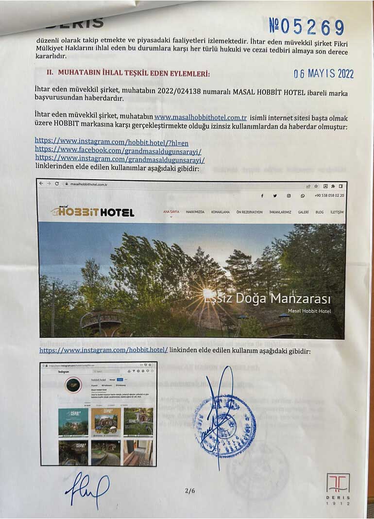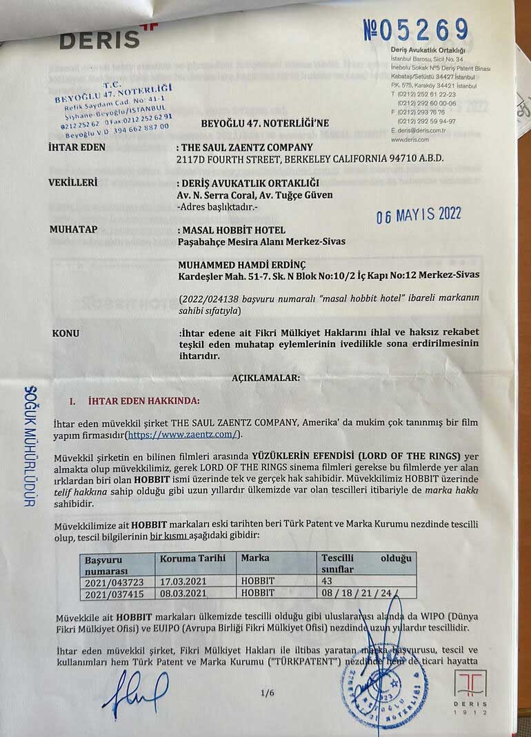 İhtarnamede, 'Hobbit' isminin 'Yüzüklerin Efendisi' filmiyle özdeşleşen bir isim olduğu ve telif haklarının kendilerinde bulunduğunu belirterek, izinsiz kullanımının mümkün olmadığı vurgulandı.