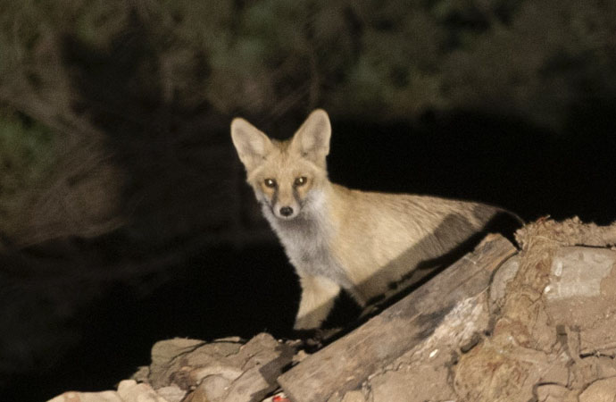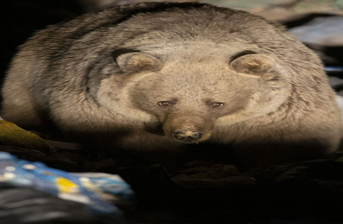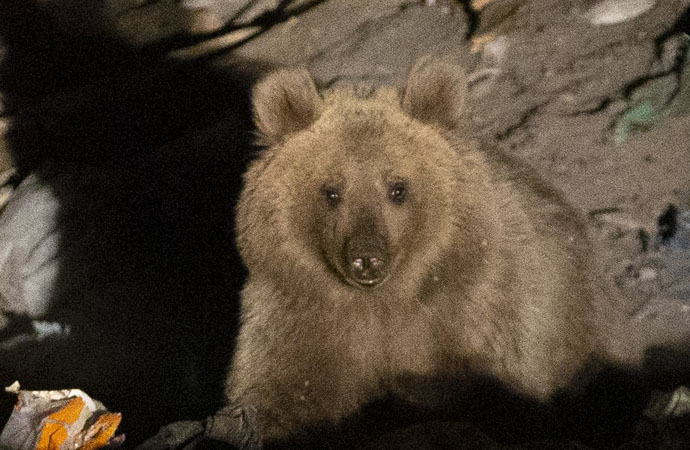 Gece saatlerinde bozayı ve tilkiler dağlık alandan yiyecek bulabilmek için çöplüğe iniyor.