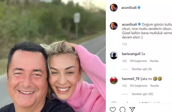 Ilıcalı genç sevgilisi Ayça Çağla Altunkaya ile pozunu paylaşıp romantik bir de not düştü. Acun Ilıcalı paylaşımına "Doğum günün kutlu olsun, nice mutlu senelerin olsun. Güzel kalbin bana mutluluk vermeye devam etsin" yazdı.