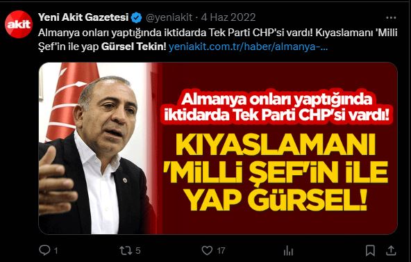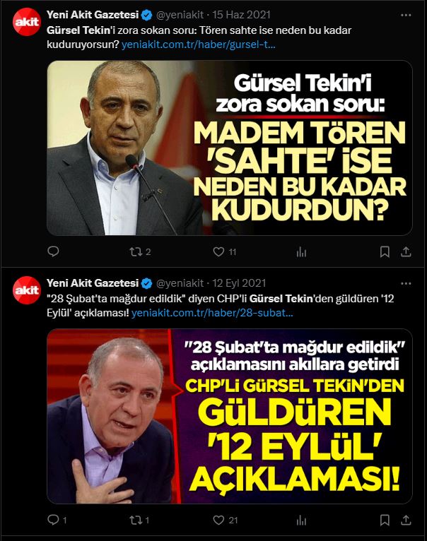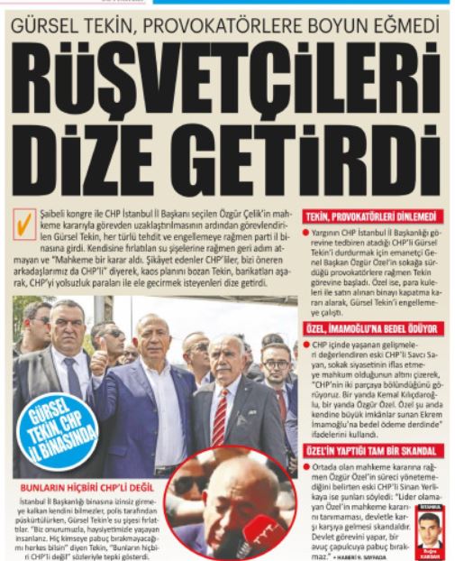 Gerici Yeni Akit gazetesi ise daha önce hakaretler yağdırdığı Gürsel Tekin'in polislerle beraber il binasına girmesini manşetine taşıdı ve "Rüşvetçileri dize getirdi" başlığını attı.