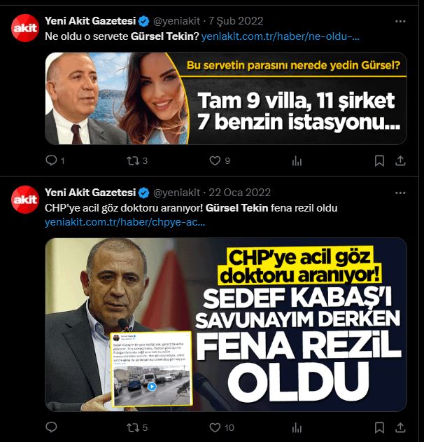 Akit'in daha önce mal varlığı da dahil Tekin hakkında yaptığı haberler gündem oldu.