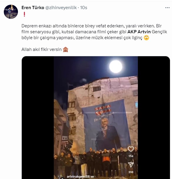 AKP Artvin Gençlik Kolları'nın skandal deprem videosuna tepki yağdı: Saf kötüsünüz
