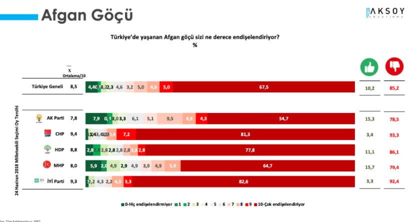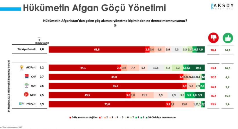 Afganistan’dan gelen göç dalgasına karşı hükümetin politikalarından duyulan memnuniyetsizlik AKP ve MHP seçmeni arasında bile üst seviyelerde.