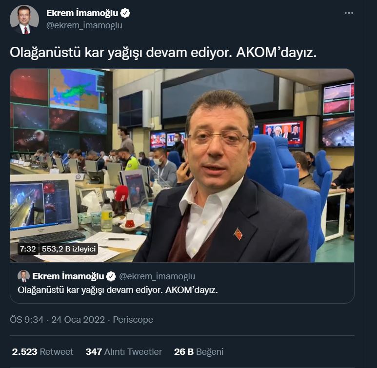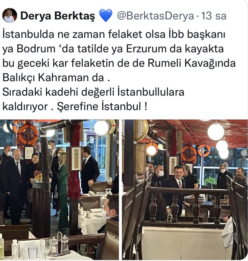 Ekrem İmamoğlu’nun dün akşam balıkçıda olduğu haberini yayan Memleket Partisi İstanbul İl Başkan Yardımcısı Derya Bektaş, fotoğrafların tepki çekmesinin ardından Twitter hesabını kapattı.