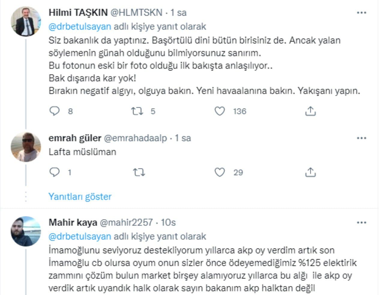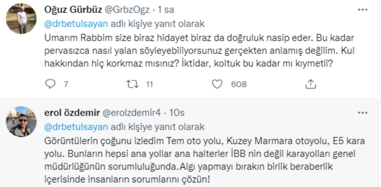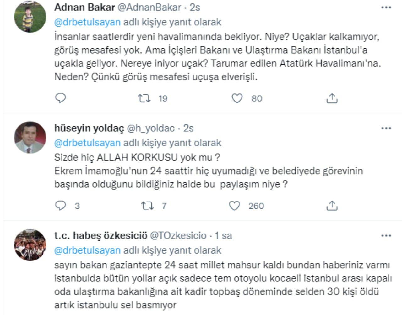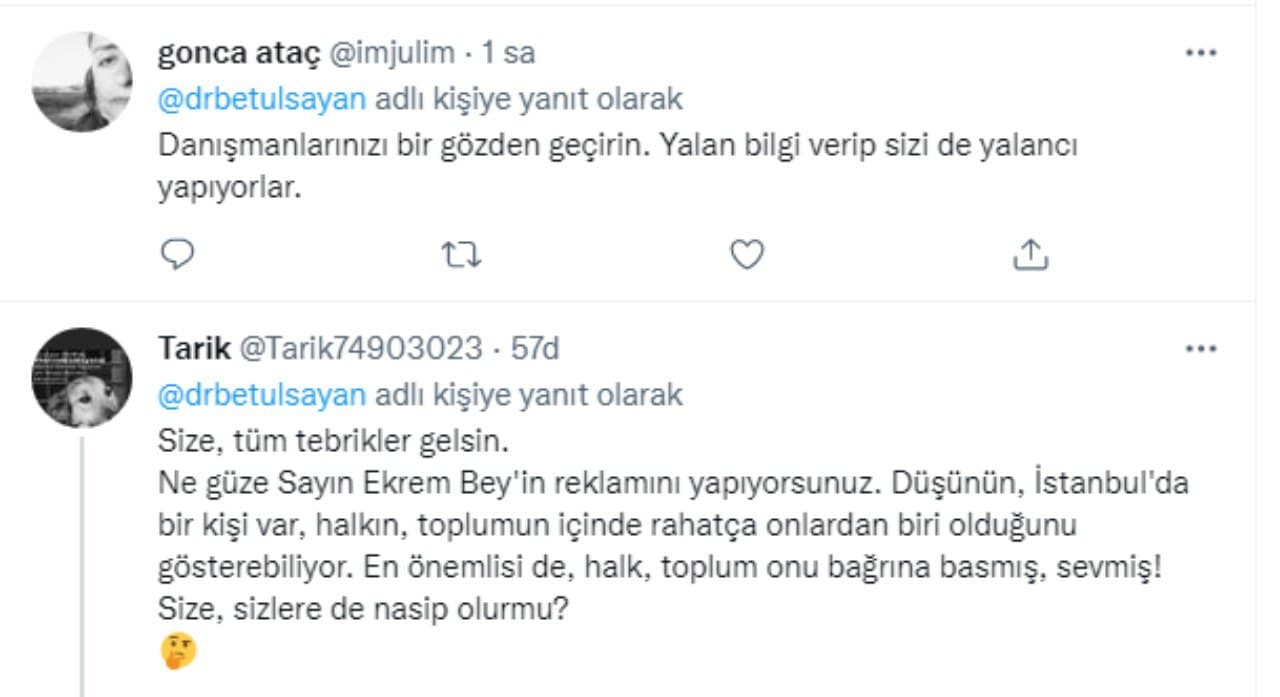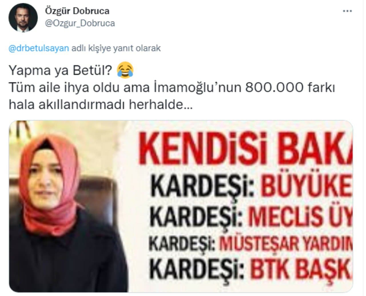 Fatma Betül Sayan paylaşımında "İBB başkanlığı öncelikle sorumluluk sahibi olmayı gerektirir. Kadınlar, yaşlılar, bebekler yollarda aç, susuz kalmışken balık keyfi yaparak belediye başkanlığı yapılmaz." dedi.