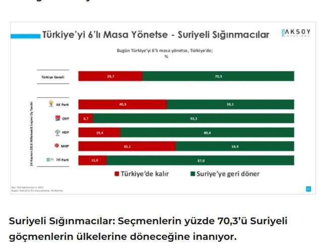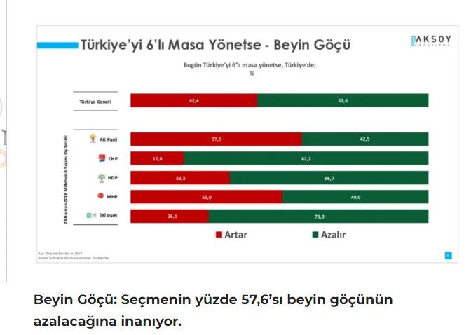 Milli Gazete'nin haberine göre, ittifaklar arası oy değişimlerini ortaya koyan seçim anketi şirketleri saha çalışmalarını hızlandırırken son seçim anketini tamamlayan Sosyal Demokrasi Vakfı Başkanı (SODEV) ve AKSOY Araştırma Şirketi 6’lı masa ile ilgili gerçekleştirdiği çalışmayı kamuoyuna duyurdu.
