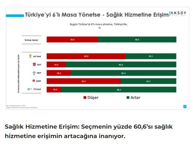 Son günlerin tartışılan konusu olan “Sizce 6’lı masa seçime kadar uyum içinde çalışabilecek midir?” sorusunu vatandaşa sorduklarını ifade eden Ertan Aksoy “Masa’nın dağılacağına inananların oranı sadece yüzde 22,6. Bu oran AKP seçmeninde bile yüzde 35. Bu demek oluyor ki, masanın bileşenleri farklılıklarını korumakla birlikte asgari müştereklerde birleşebilecek olgunluğa sahip olduklarını topluma ispat etmiş durumda. Kamuoyu yapıcıların bir kısmının aksine seçmende devam edeceğine dair Masa’ya inanç büyük“ ifadelerini kullandı.